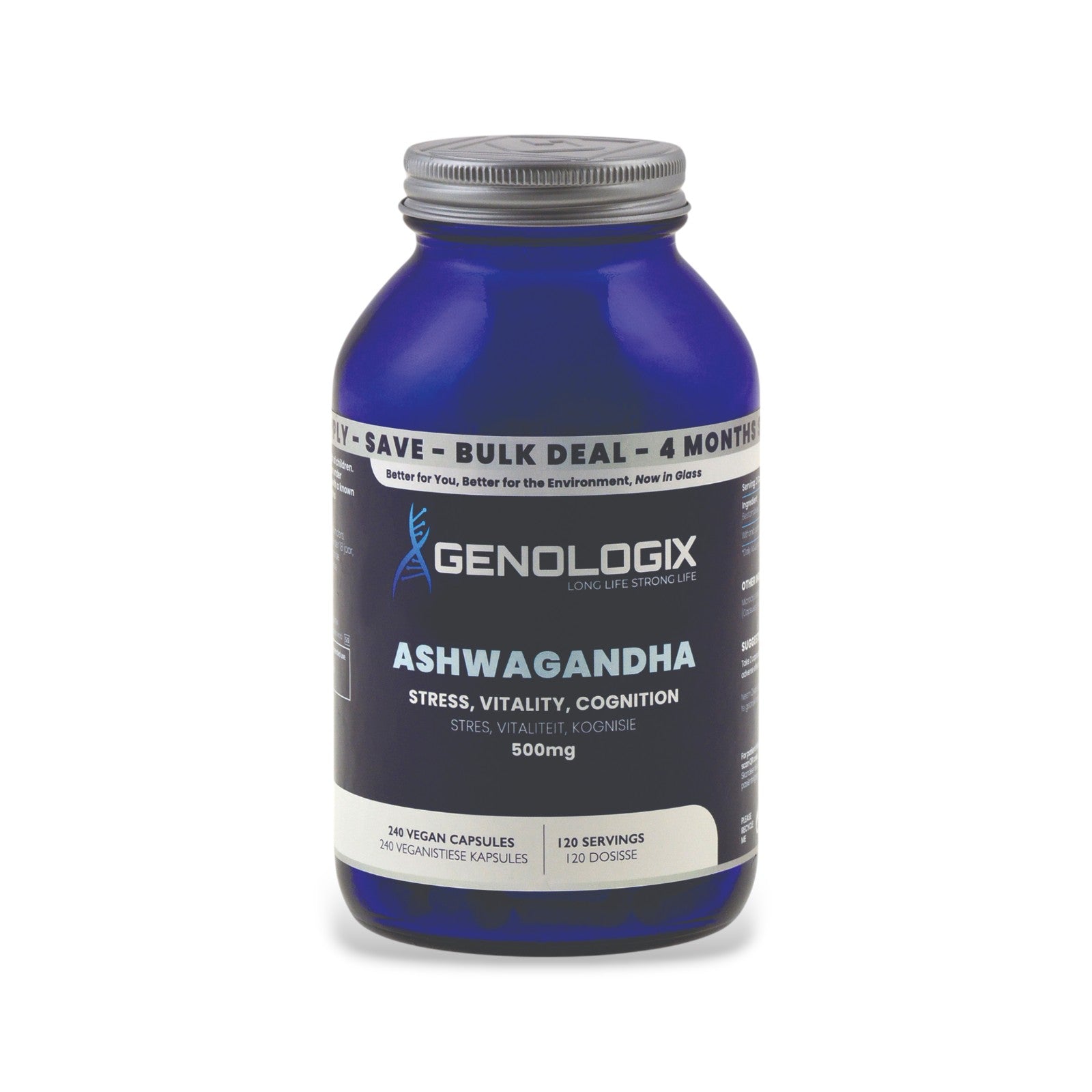 This is a 4 month BULK version of our Ashwangandha. Genologix Ashwaganda is one of the most powerful herbs in Ayurvedic healing that assists in reducing anxiety, depression and lowering the stress hormone cortisol.